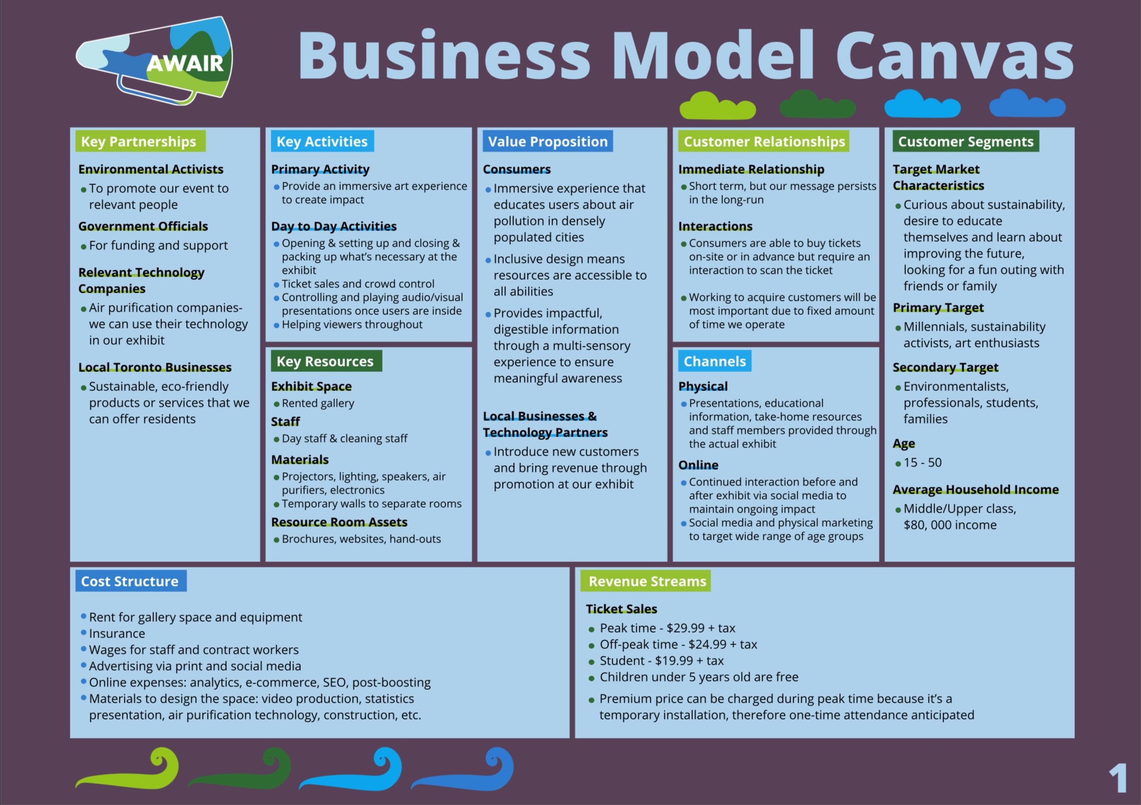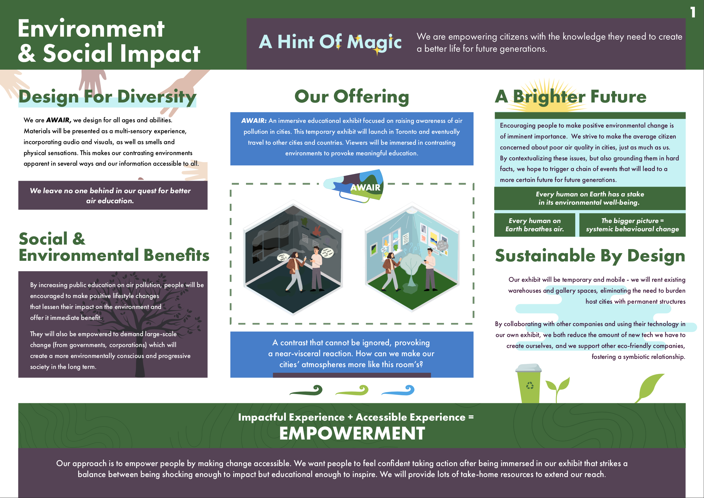 These are the proposal boards for AWAIR. Each board dives deep into one topic; Environmental & Social