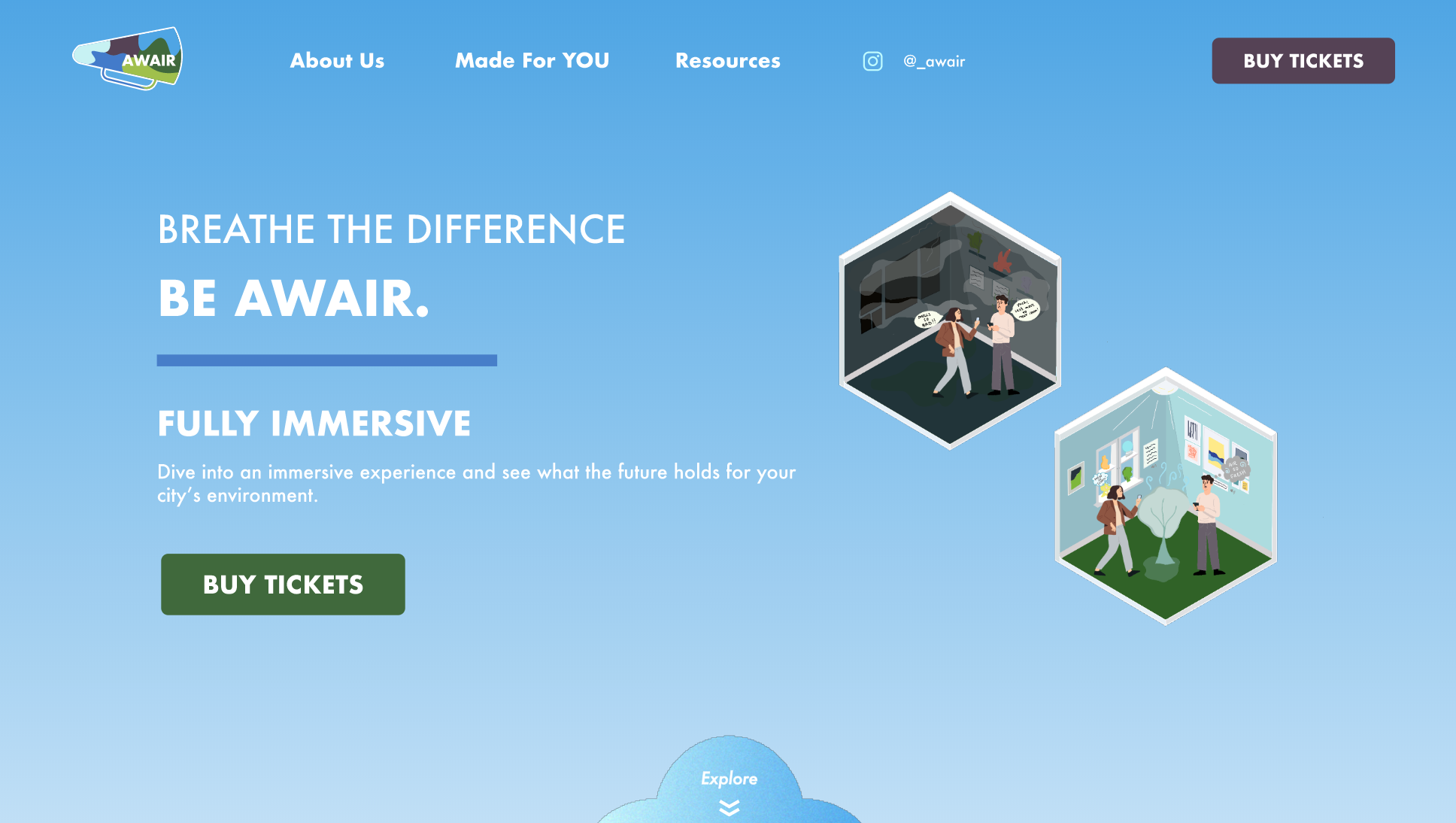 AWAIR: A temporary, immersive exhibit designed to educate and bring awareness to poor air quality in dense cities and encourages viewers to participate in small-scale changes to combat it.
