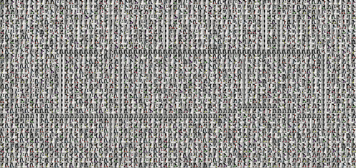 image is of legs with 13 different coloured socks moving in an indicated direction, with one colour